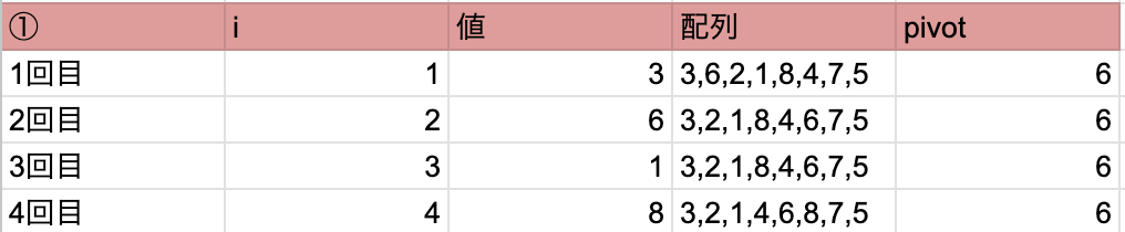 クイックソートはpivotを基準に大きい値と小さい値をグループに分ける処理を行っています。