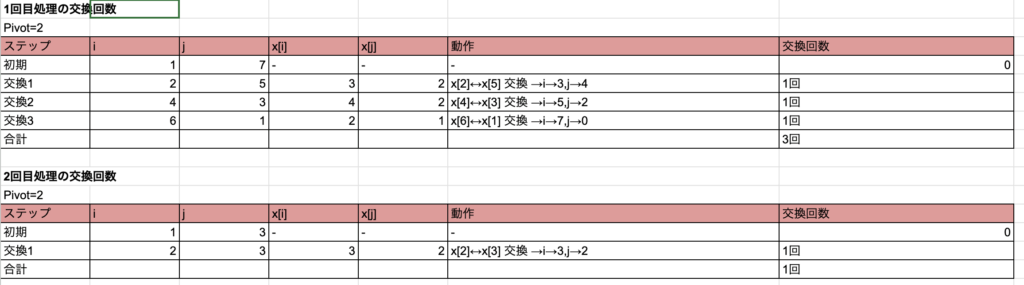 d は、Partition処理中の while True ループ内で要素が交換された回数です。