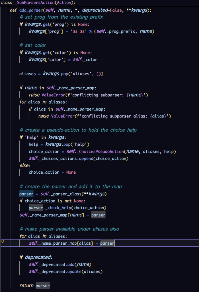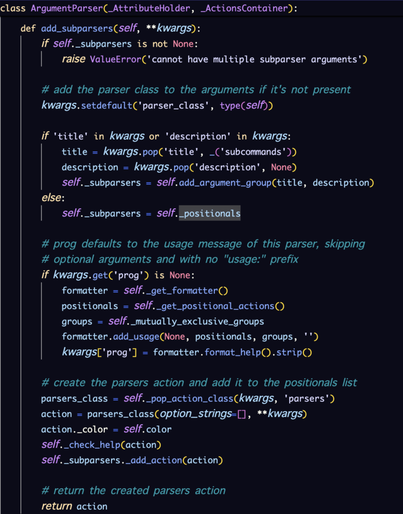 ここでは、parsers.pyのadd_subparsersを呼び出しています。
