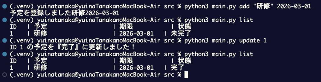 print(f"ID {task_id} の予定を『完了』に更新しました!")